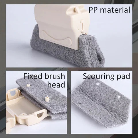 - PP material handle, comfortable grip, fixed brush head design scouring pad material, good cleaning power, can clean door and window slides and gaps, etc., easy and effortless