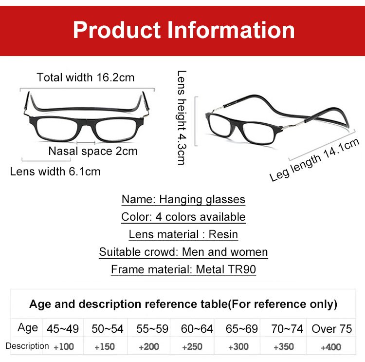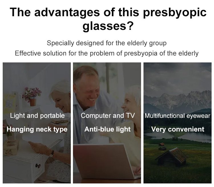 Hanging neck presbyopic glasses