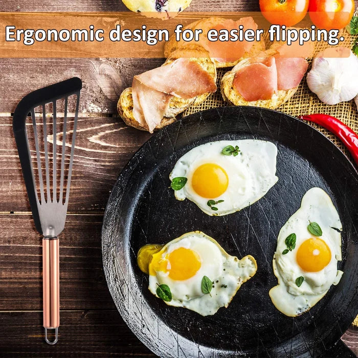 - Flexible design: flexible high-heat silicone soft top edge and stainless steel blade makes cooking safe, help to get close to the food surface and faster to shovel; Features ergonomic design, easy for you to handle, the flexible design is convenient for you to use