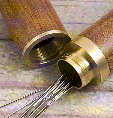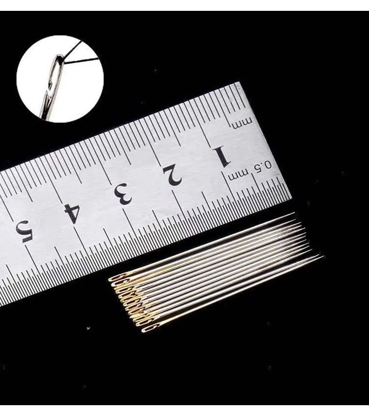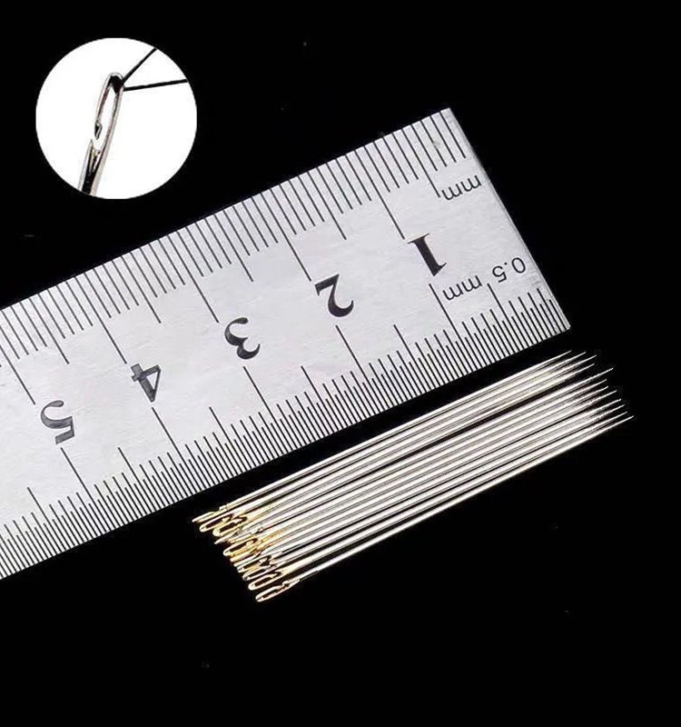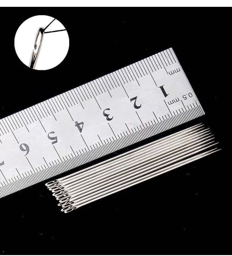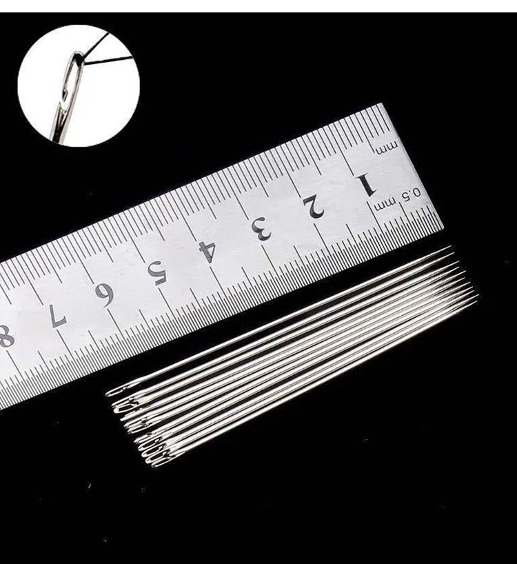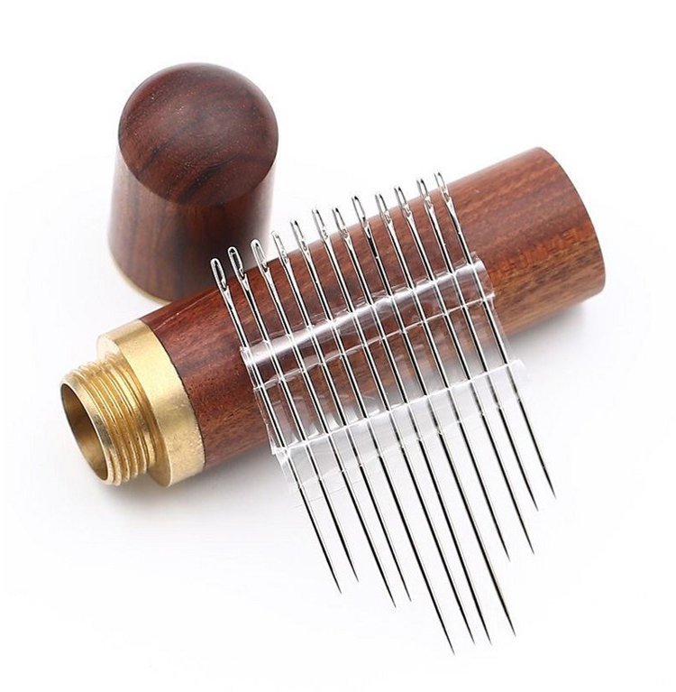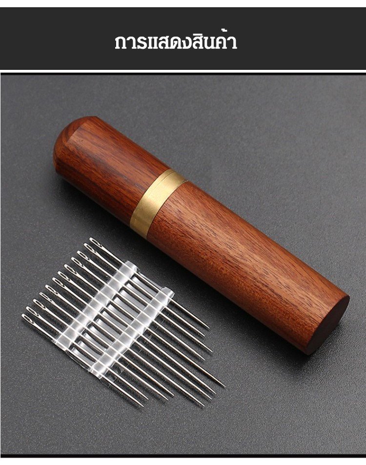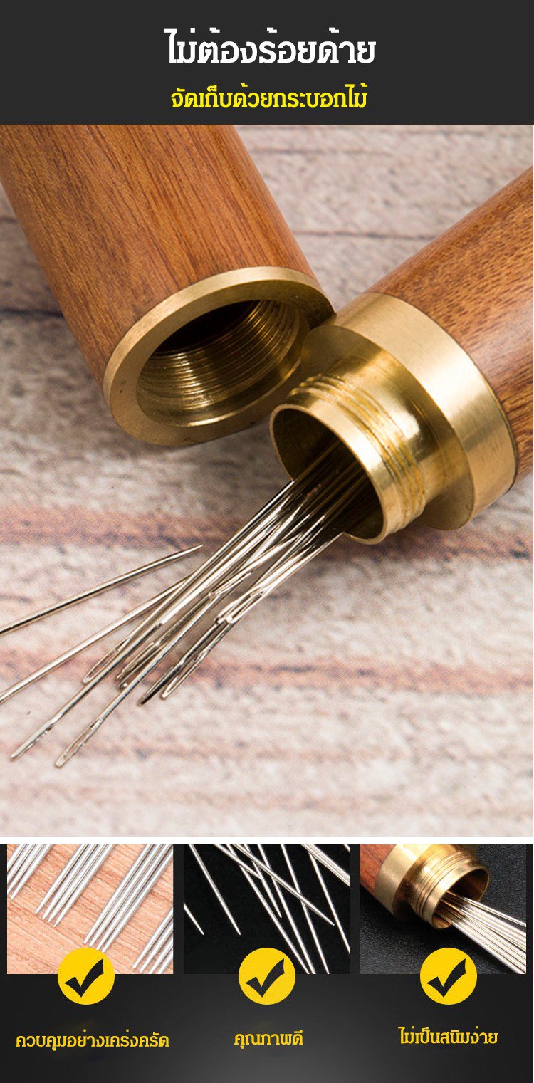 Set of wooden sewing needles without threading.